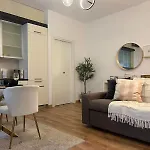 Este apartamento está equipado com 1 quartos, sofá, mesa de trabalho e máquinas de café/chá, e cozinha totalmente equipada com microondas, chaleira elétrica e refrigerador. A propriedade também tem 1 casas de banho. Os hóspedes podem usar bidé, casa de banho separada e chuveiro sem suplemento adicional.